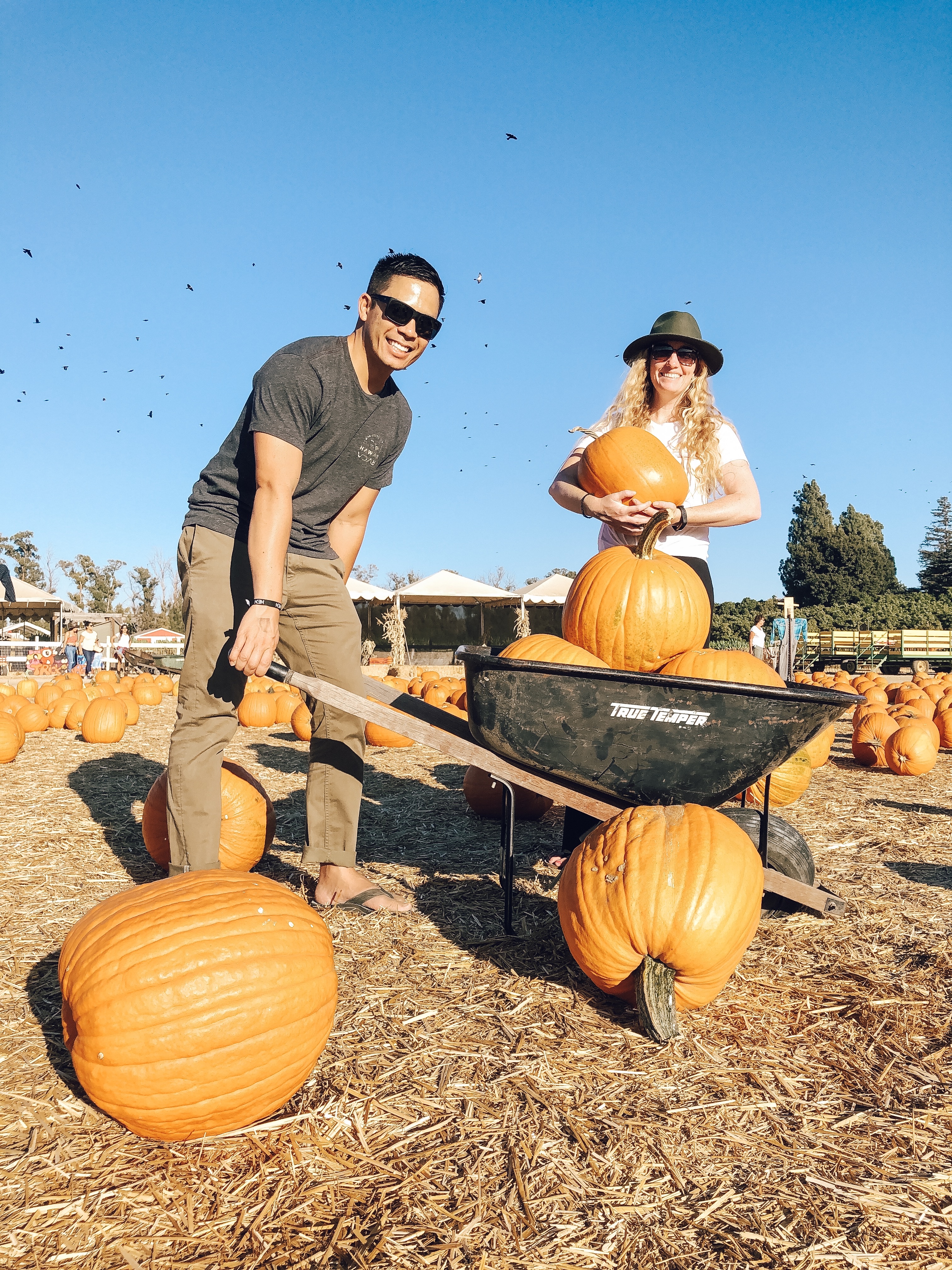 Fall in southern California doesn’t always feel like fall in other states. The days are warm, the Santa Ana winds are blowing, and the news is filled with wild fires. The hills are covered in dry brush instead of color changing maple or aspen trees. With that being said, California is still very agricultural leading to some pretty awesome farms that are open to the public. The best part is, during the fall they turn into pumpkin patches! Visiting a pumpkin patch quickly became one of our favorite fall traditions.