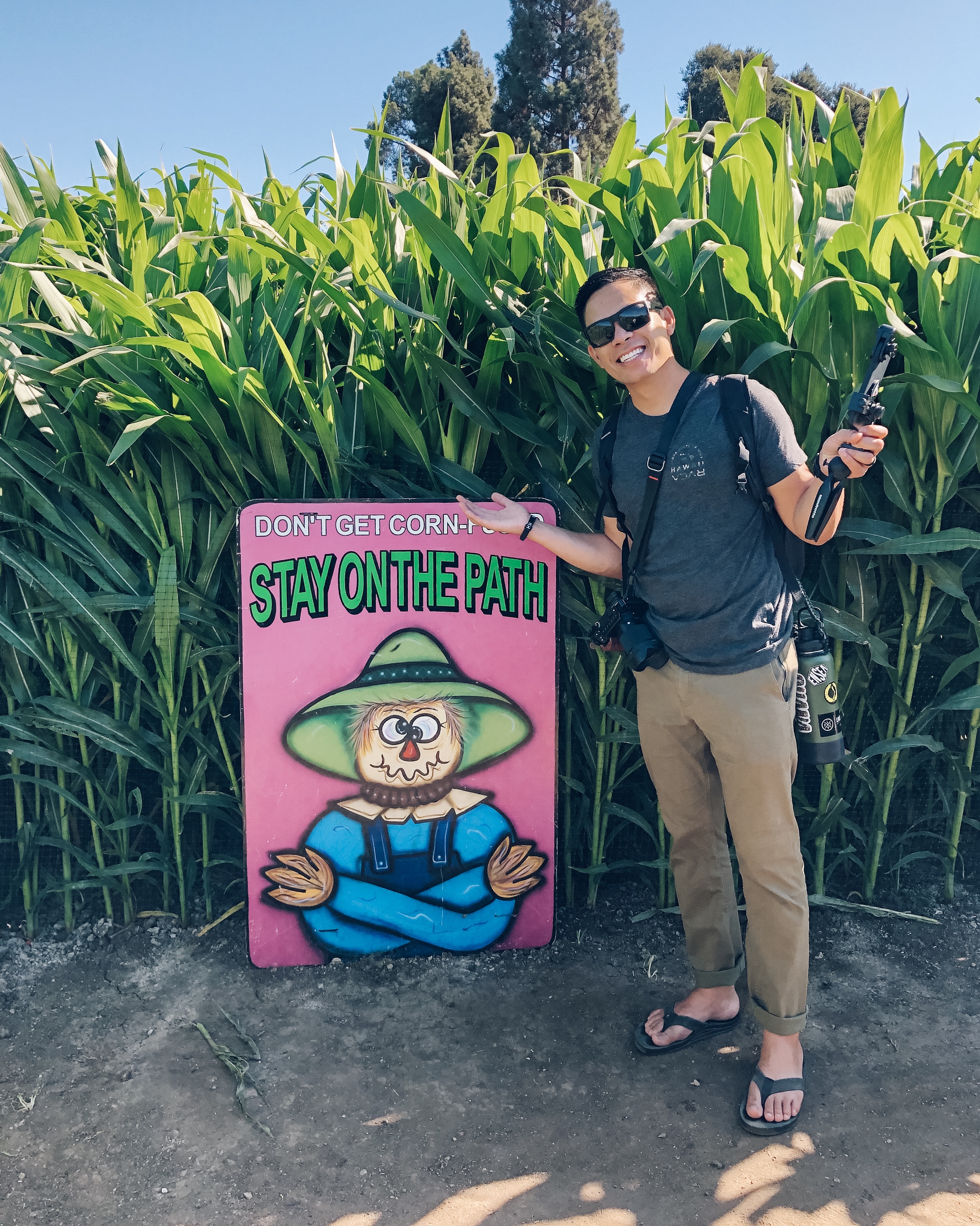 Our first stop was the corn maze! We’ve done a few mazes together (i.e. the pineapple maze at the Dole Plantation), but this one was so fun! The corn stalks are pretty high, and it was challenging to say the least.